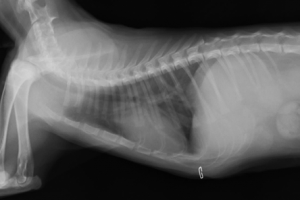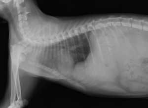 術後レントゲンです。心臓と横隔膜の位置が正常に戻り、呼吸状態も落ち着きました。術後5日目には退院となり、現在術後半年以上経ちますが、元気で過ごしています。横隔膜ヘルニアは交通事故などの外傷で起こすことがほとんどで、年齢とともに自然に発生することはまずありません。外出する猫ちゃんに多く、横隔膜ヘルニアになってしまったら呼吸状態が急激に悪くなり、死亡することが多いため早急な手術が必要です。予防策としては去勢、避妊などを早期に行い、外出を極力させないようにするしかありません。この猫ちゃんが助かってほんとによかったです(^o^)!