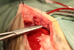 ヘルニア孔を縫合、整復し、無事手術が成功しました。