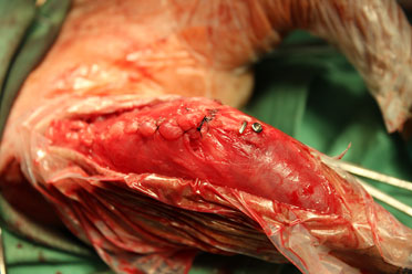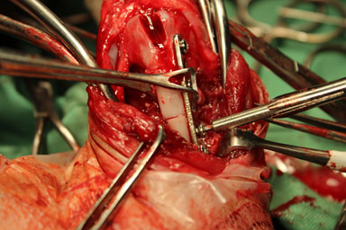最後に脛骨粗面の転植し、大腿骨-膝蓋骨-脛骨粗面のアライメントと整え手術終了としました。