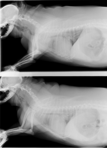 すぐに酸素吸入処置を行い、その後レントゲン検査にて頸部気管が潰れている気管虚脱を起こしていることが分かりました。