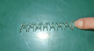 気管虚脱は程度が軽いグレード1から最も重症のグレード4の4段階まであり、この子は残念ながらグレード4でしたので、状態が安定した後にすぐに潰れた気管を整復する手術を行いました。気管を整復するのにPLLPといわれる円筒状のプロテーゼを使用します。
