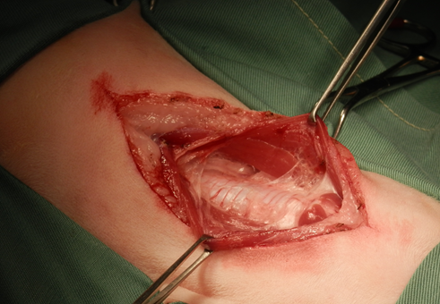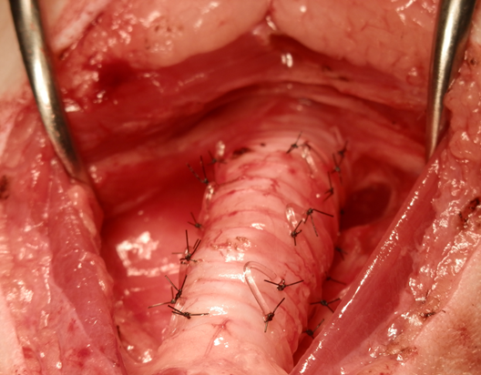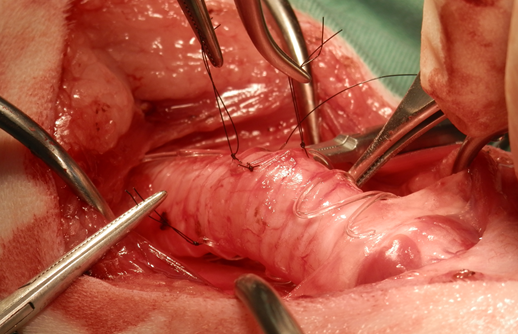 犬の気管虚脱による呼吸困難 手術法:PLLPを用いた気管外プロテーゼ法