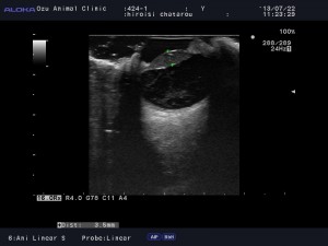 超音波検査:水晶体が完全に白濁している。