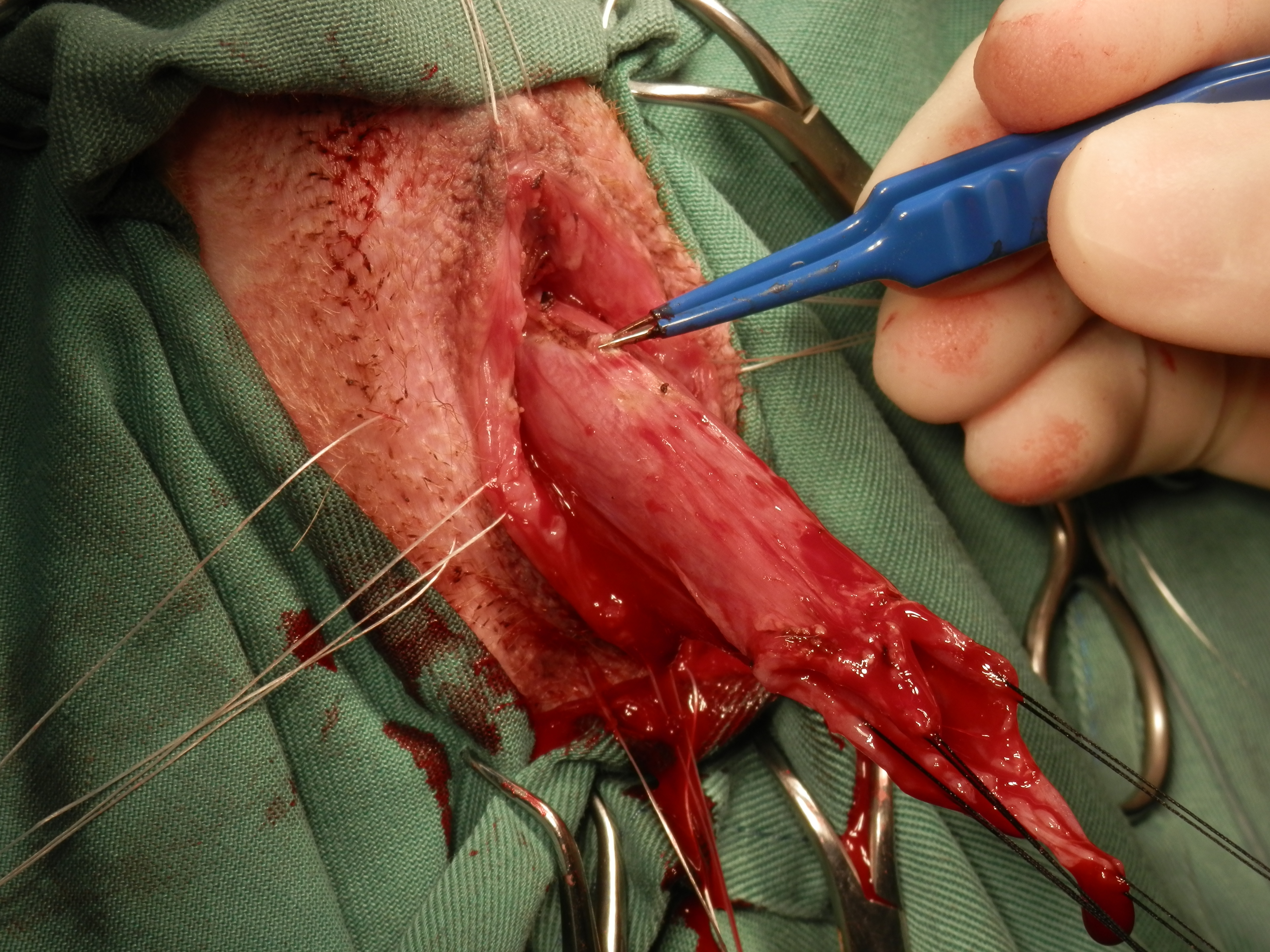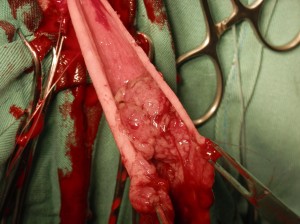肛門側からアプローチしまして、腫瘍が完全に見られない所で切除しました。