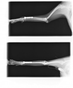 【右前肢撓尺骨骨折】 手術法:プレート固定による骨折整復手術