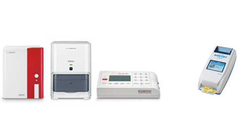 右から血球計算機器(プロサイトDx)、血液生化学検査機器(カタリストDx)、血液凝固検査(コアグDx)、血液ガス機器(Gastat mini)院内にてすぐに血液検査が可能です。