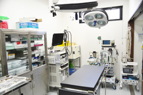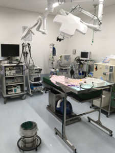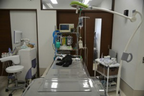 当病院では手術室が2か所、処置室が1か所あり、それぞれに麻酔モニター、麻酔器、人口呼吸器、手術用電気デバイスを完備しているため、同時に3件の手術が可能となっています。